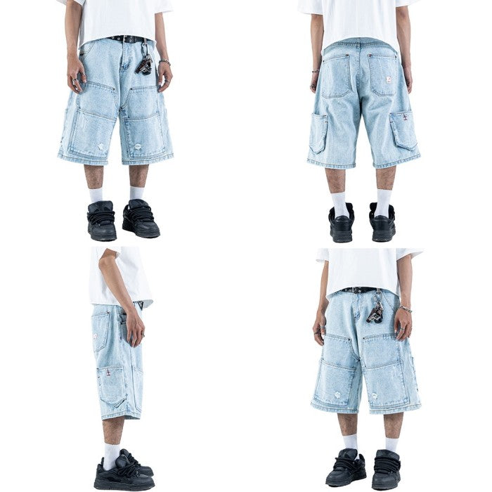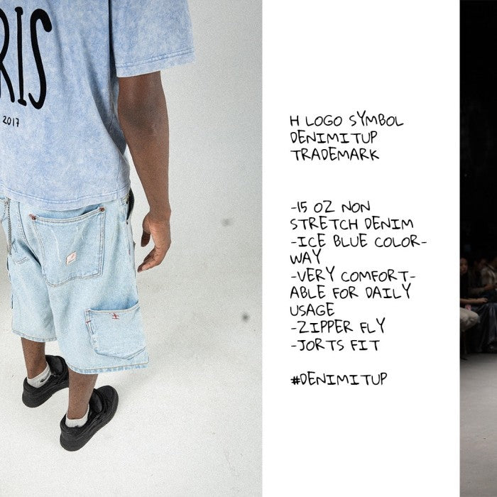 These jorts feature the same pattern but have been slightly modified with added double-knee denim for a carpenter look. They also come with additional pockets on the inside back.