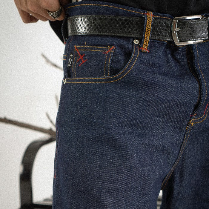 Made with a wider pattern than regular pants for security and modern styling. The H1 baggy has wide leg openings, and this version is non-prewashed, also known as raw denim.