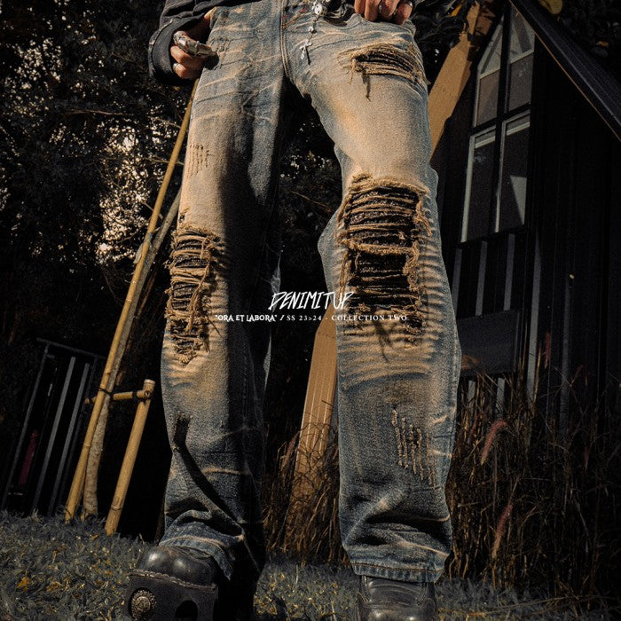 Crafted with a touch of traditional Indonesian songket, the songket stitching here serves as a patch for the denim distressing, making these jeans both rare and stylish!