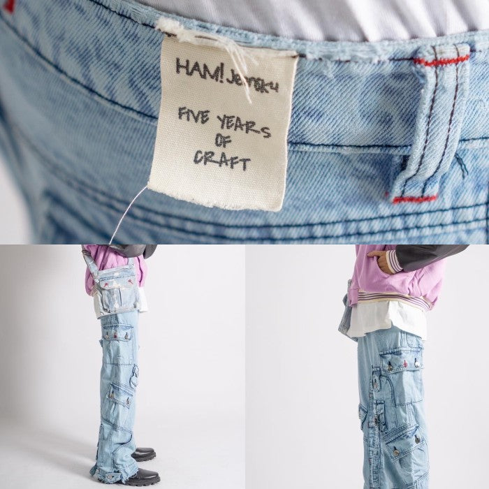 Made with 15 OZ non-stretch denim, 100% cotton, this model features a unique design with numerous pockets and extra adjustable straps for fastening and unfastening. The A1 Complex model offers two variants: “spread out” and “tied in.”
