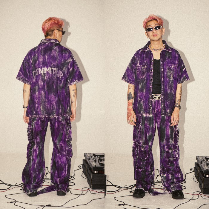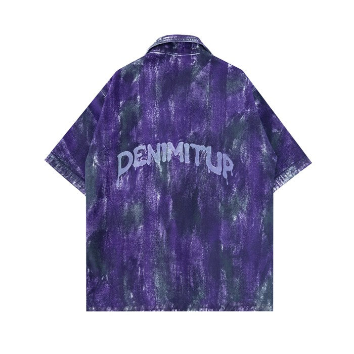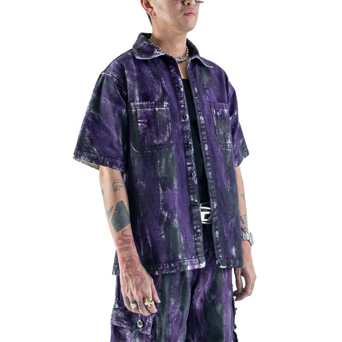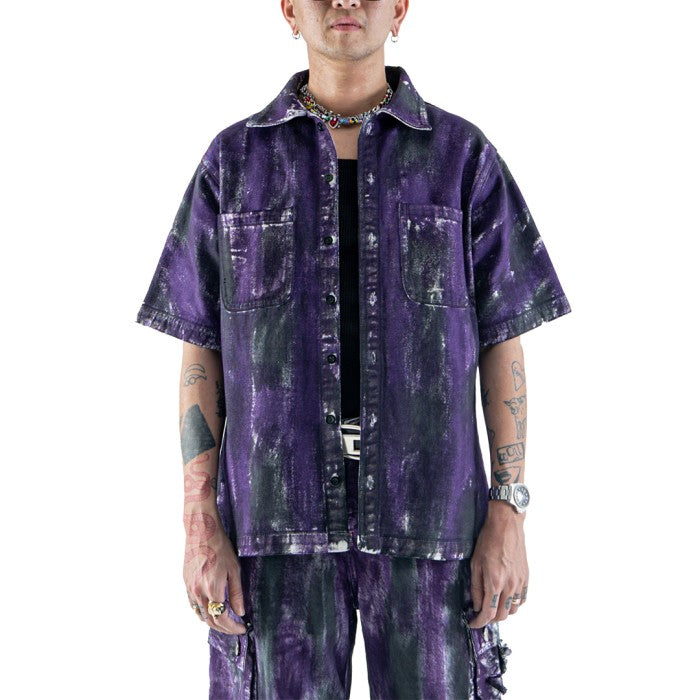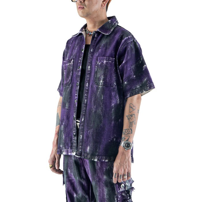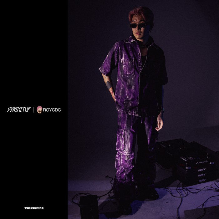 DENIMITUP embroidered work denim shirt - Chroma purple x Roycdc