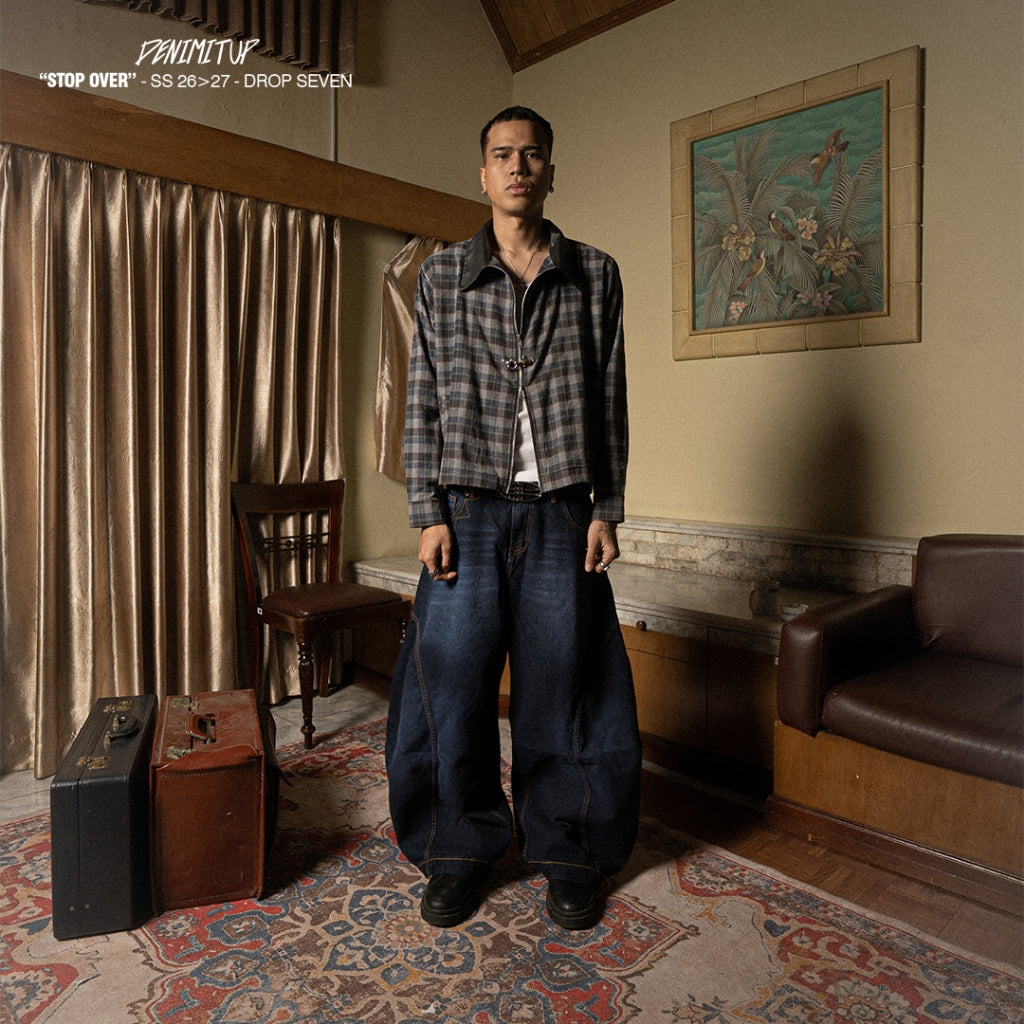 This pair features a boldly curved barrel cut with an extra-wide silhouette. The leg opening spans 29cm to 37cm—but don’t worry, we added a smart detail: a hidden hem slit that lets your foot slide through easily, so you won’t step on your jeans.