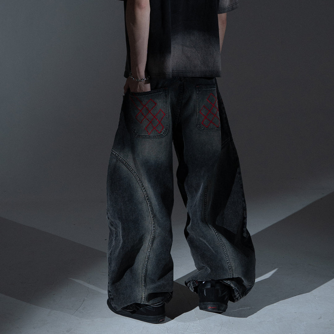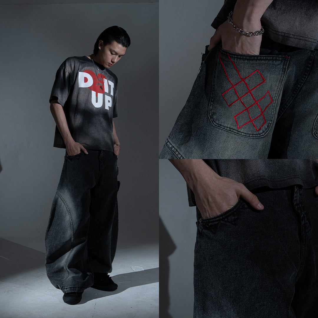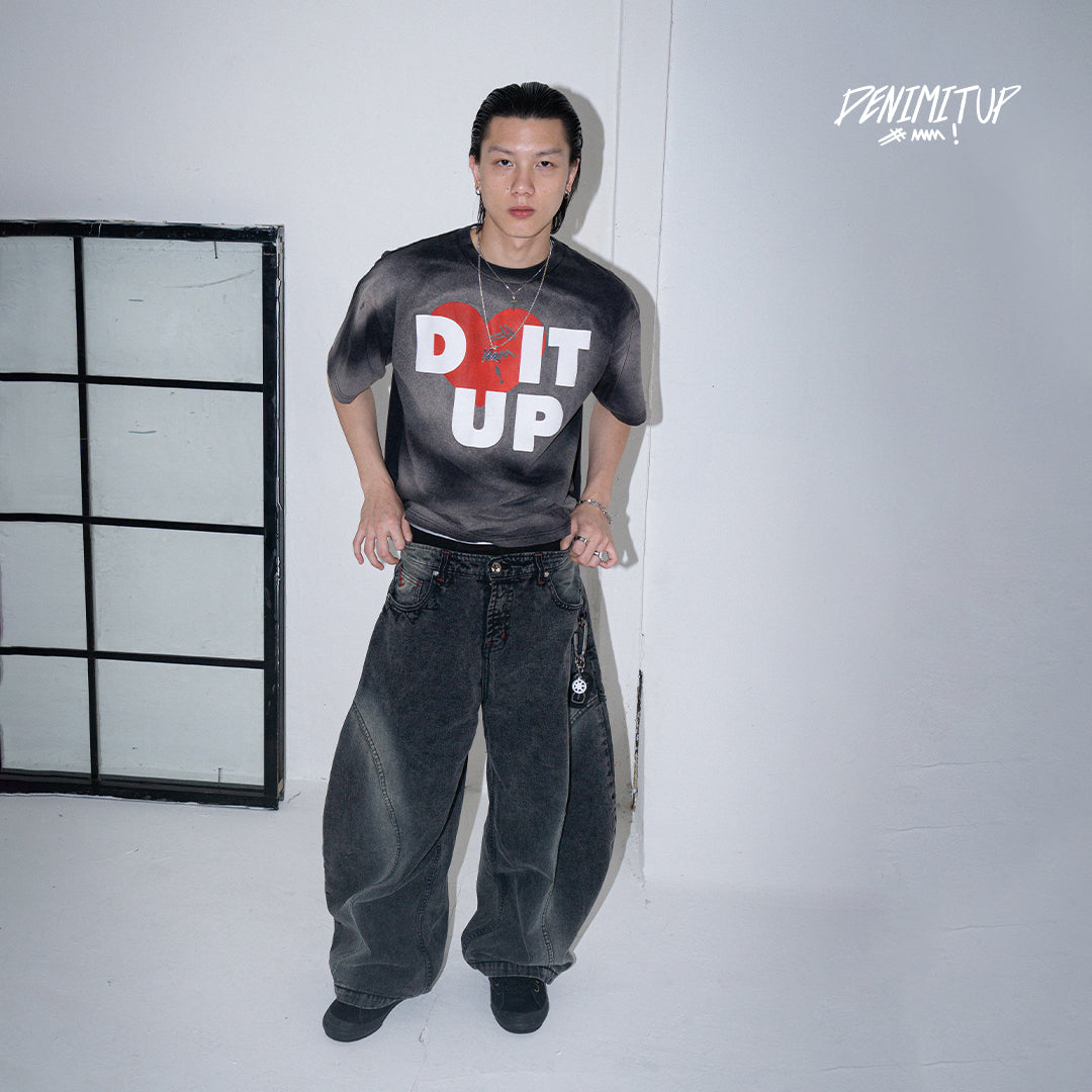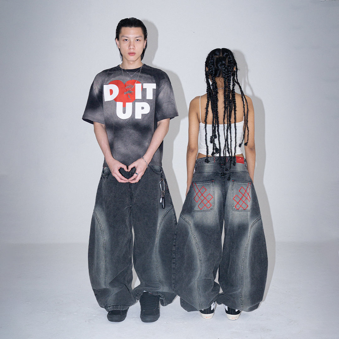 This pair features a boldly curvy barrel cut with an extra-wide silhouette. The leg opening stretches beyond 30cm, but don’t worry — we’ve integrated a smart detail: a hidden slit at the hem that allows your foot to slip through easily, preventing your jeans from getting stepped on.