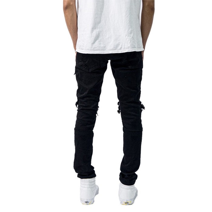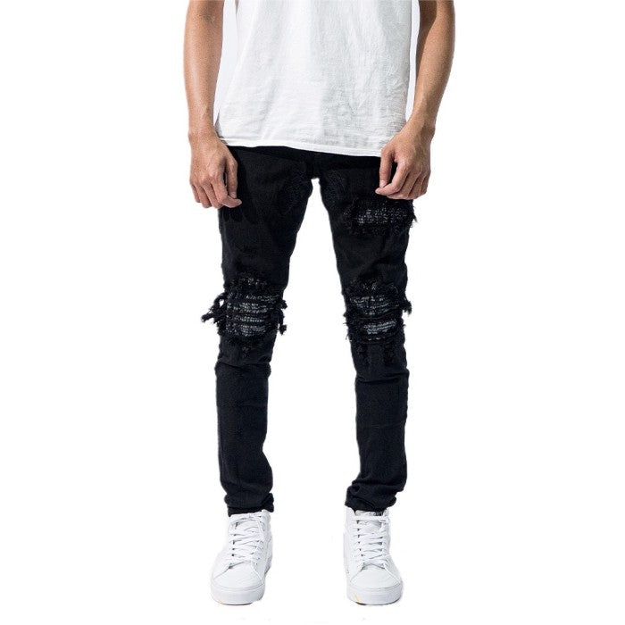 • Torn and patched with denim fabric