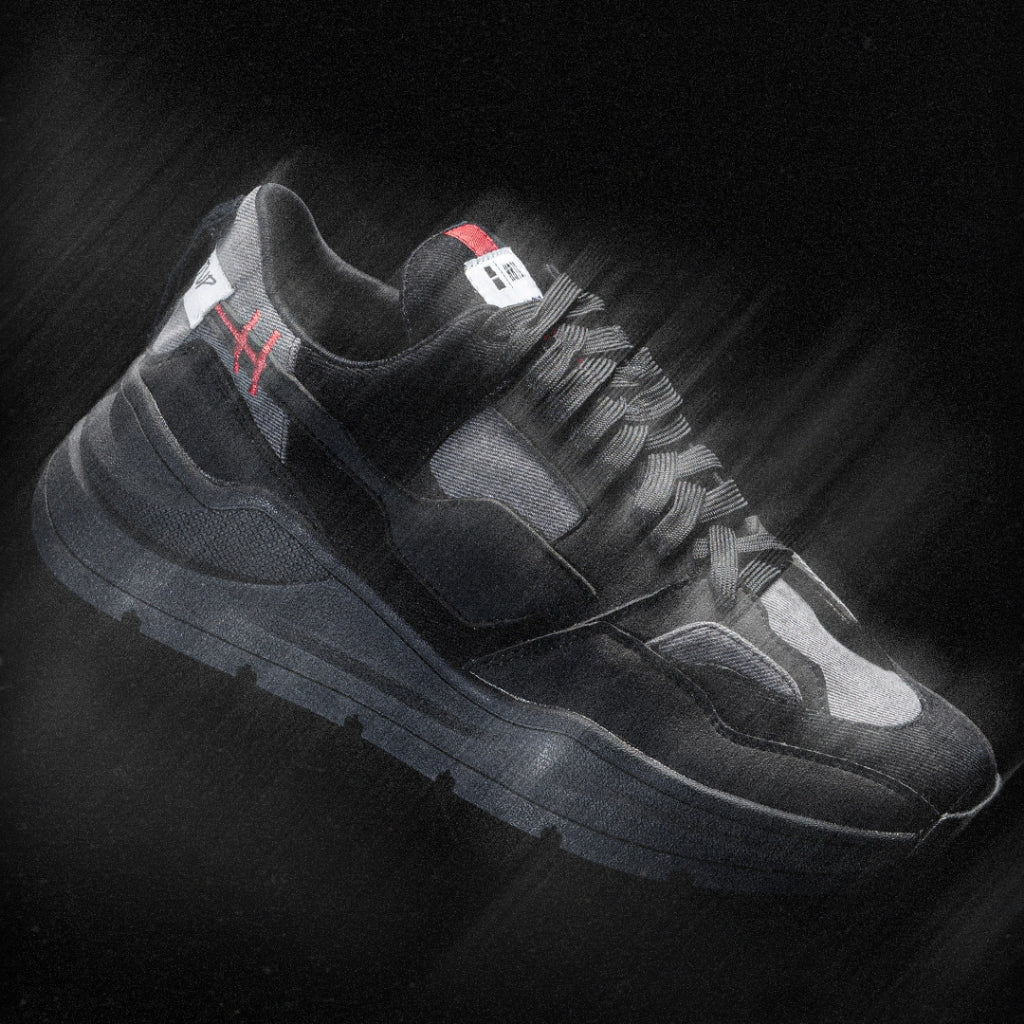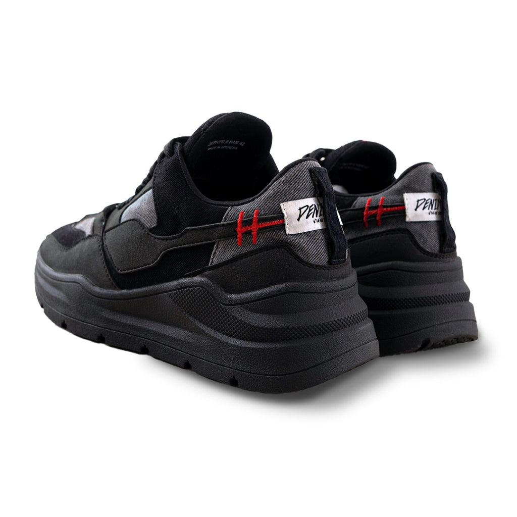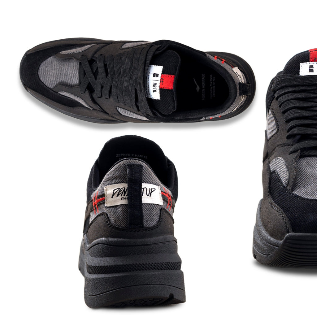 Uses premium faux leather heiden swoosh thats combined with denimitup H logo symbol! This article uses our special 15 OZ non stretch denim, that's specially washed into shadow grey color as the upper fabric of the shoes creating a tricolor effect.